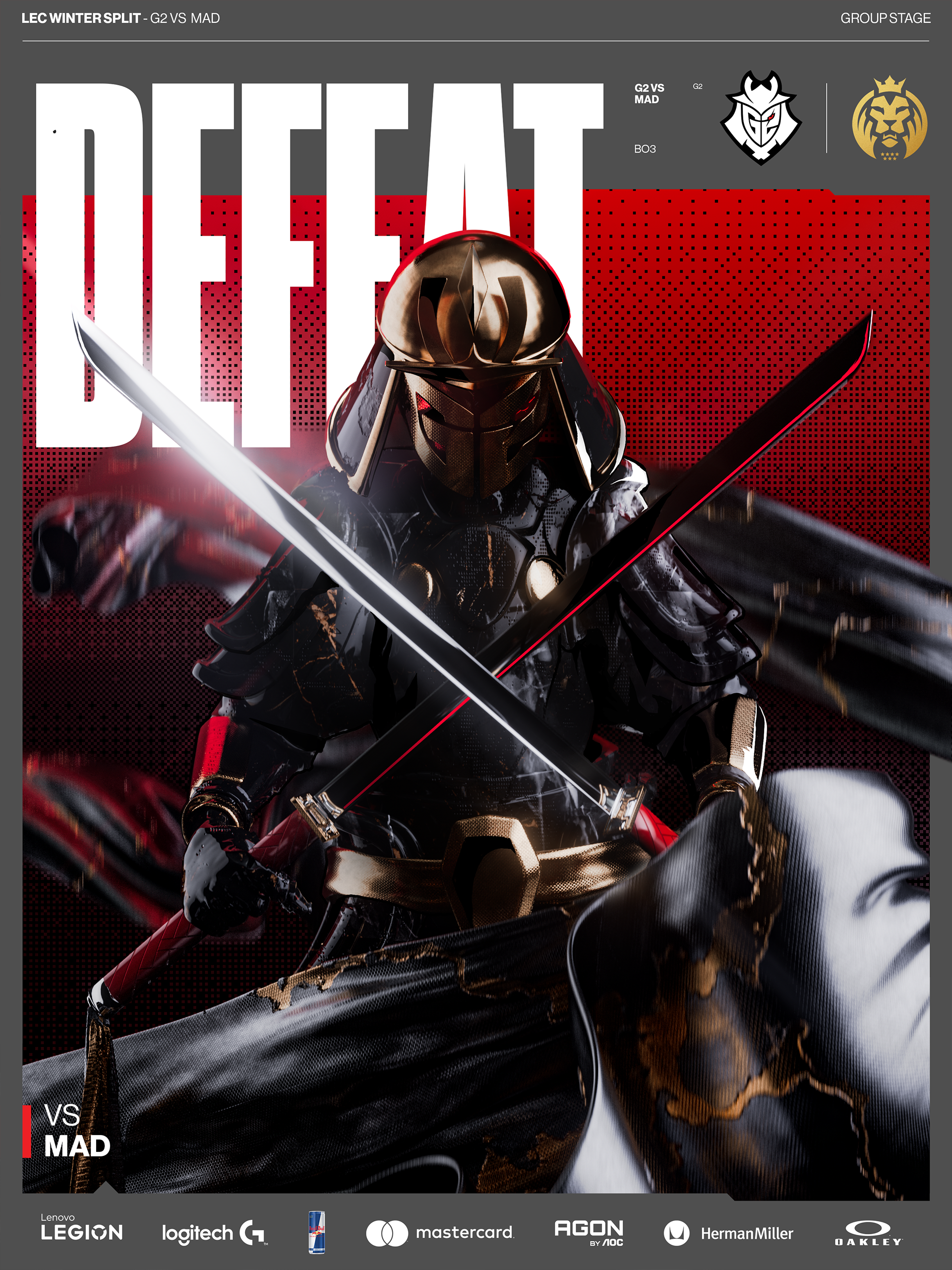 Before diving into the LEC graphics for that season, I wanted to bring the G2 Esports Samurai to life in a way that reflected the team’s identity.